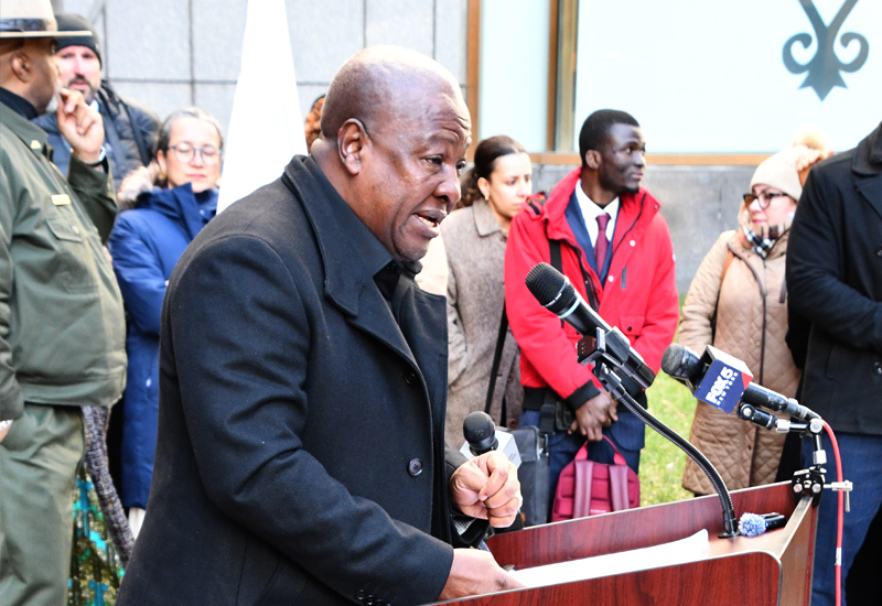 President Mahama leads a wreath-laying ceremony at the African Burial Ground